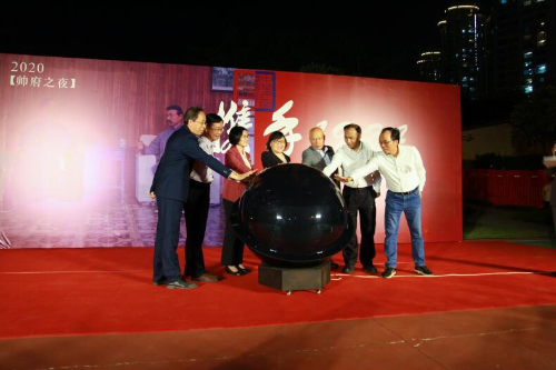 随后,广州市直机关工委书记江咏川,广州市文化广电旅游局党组成员、副局长欧彩群,广州市文化广电旅游局一级调研员徐颖,广东省宋庆龄基金会秘书长蔡延钊,孙中山基金会副理事长、中山大学历史系教授赵立彬,广州文学艺术创作研究院副院长李新华,孙中山大元帅府纪念馆馆长程存洁等七名领导一起按下启动按钮,正式宣告演出开始,并与全体嘉宾移步南楼欣赏首演。