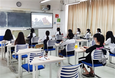 广州市工贸技师学院学生观看庆祝中国共产党成立100周年大会直播。