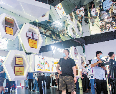 到“中小企业能办大事”展馆的参观者络绎不绝
