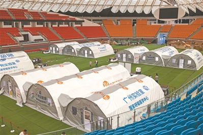 6月1日,在广州体育馆,广东首个“猎鹰号”气膜方舱实验室正式投入使用。随着广州金域医学检验中心有限公司通过采用总部中心实验室、“猎鹰号”气膜实验室、“猎鹰号”移动实验室(检测车)“三位一体”的联合作战方式,将广州地区的日检测产能从26万管提升至35万管,每天可检测350万人份,成为全球新冠核酸检测日单产冠军。