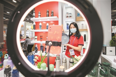 第130届中国进出口商品交易会上,参展商在进行直播。