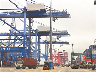 广州港南沙港区的装卸业务繁忙畅旺