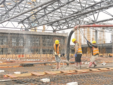 广交会展馆四期项目施工现场呈现一派热火朝天的建设景象