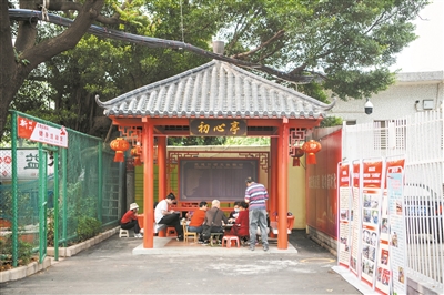 在广州市番禺区市桥街怡乐园小区,有一座名为“初心亭”的风雨亭。记者近日走访时,一群文艺爱好者正在亭中弹琴唱歌,欢乐不断。