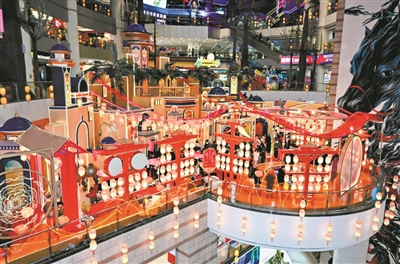 在金碧辉煌的“灯笼海”中,市民游客纷纷“打卡”朱雀大街、丽人巷、国子监、上元花街等原汁原味的唐风仿古经典场景,还参与赏灯会、猜谜语等活动……元宵佳节期间,位于天河路商圈的正佳广场布置的千盏灯笼如繁星点点。灯笼的光芒交织在一起,形成一片片璀璨的灯火海洋。