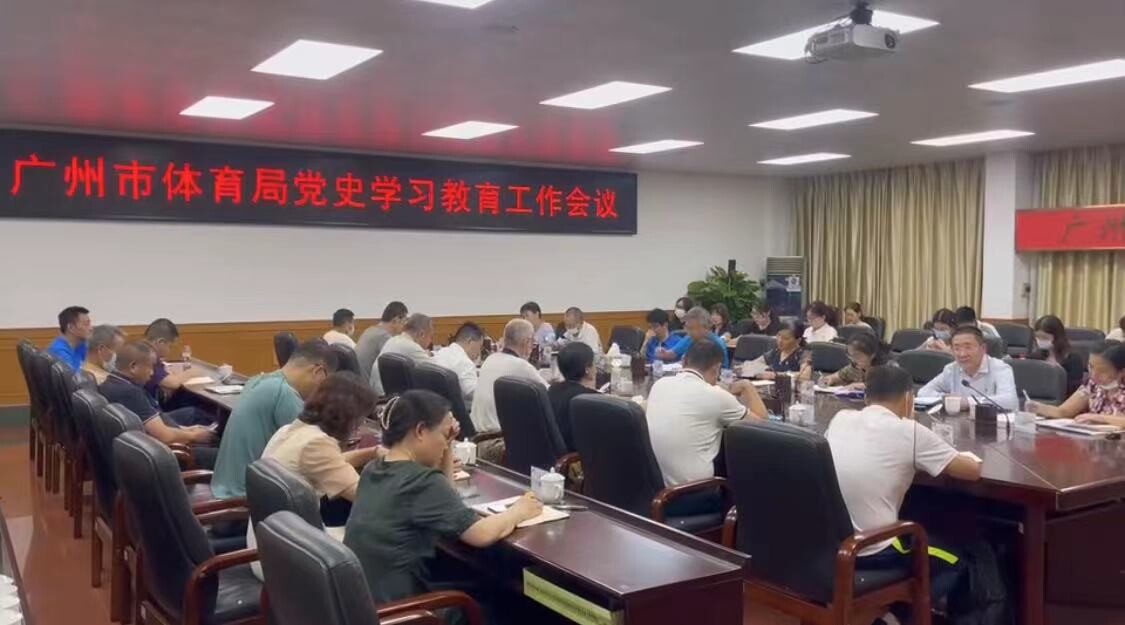 2021年9月9日下午,广州市体育局召开党史学习教育工作会议,会议由市管一级调研员、局党史办副主任毛继红主持,局属单位党组织书记、机关党支部书记、广州市足球协会党支部负责人,各单位、各部门党史学习教育工作联络员,以及局党史办成员共44人参加了会议。