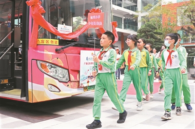 一辆重新改造的退役公交车正“停靠”农讲所广场,多功能车厢化身花城书房,配备教学电视,以视频、图文等形式展示广州红色故事,还有大量内容丰富的书籍供免费取阅,也鼓励市民、游客捐赠家中藏书,共造一个为期3个月的流动“红色书厢”。以书籍、诗词为媒,一幕幕红色场景被还原。红色记忆在群众中燃起。
