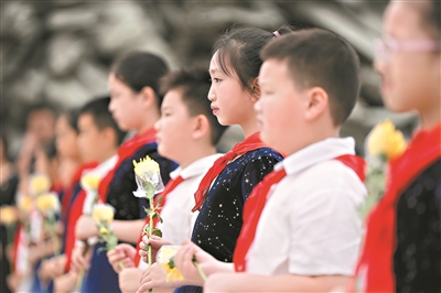 天泽中小学20名少先队员献唱《我们是共产主义接班人》,他们用铿锵有力的歌声,表达对英烈的缅怀和从小树立“强国有我”的坚定信念。华南理工大学工商管理学院学生代表朗诵《英雄花生生不息,英雄城未来可期》,颂讲英烈故事。