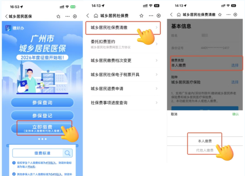 2026年度城乡居民基本医疗保险缴费进行中!为方便您足不出户完成缴费,穗好办支付宝小程序上线“城乡居民医保参保缴费”专区,一站搞定参保查询、登记、缴费!操作简单、安全快捷,支持本人缴费和代他人缴费,各项业务查办指引来啦!
