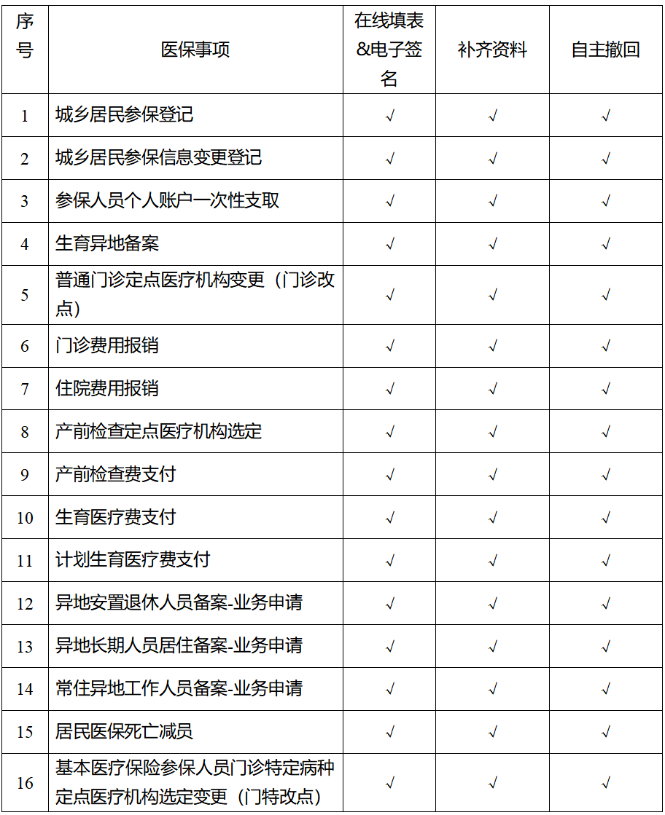 目前,已有22项医保业务在穗好办APP开通了在线表格&电子签名功能,30项医保业务开通了补齐补正和自主撤回功能。具体如下: