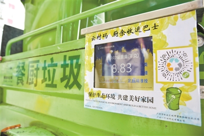 “垃圾重量9.5千克,表现优秀。”白山社区道路两旁的楼栋和餐饮店门外都贴有一张二维码,环卫工作人员回收厨余垃圾后,用手机扫码登记,垃圾车会自动语音播报收取垃圾重量和表现情况。