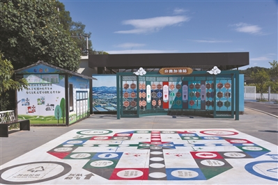 仲夏时节,走进花都区狮岭镇马岭村垃圾分类主题公园,一幅美丽和谐的乡村图景在眼前铺展开来。在村中心,今年7月刚刚建成的生活垃圾分类主题公园设置有垃圾分类飞行棋、“分类加油站”等各式好玩有趣的展板设施。
