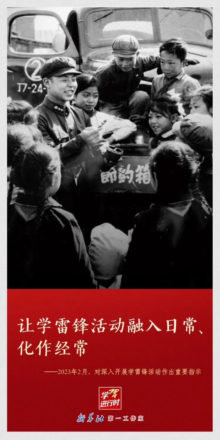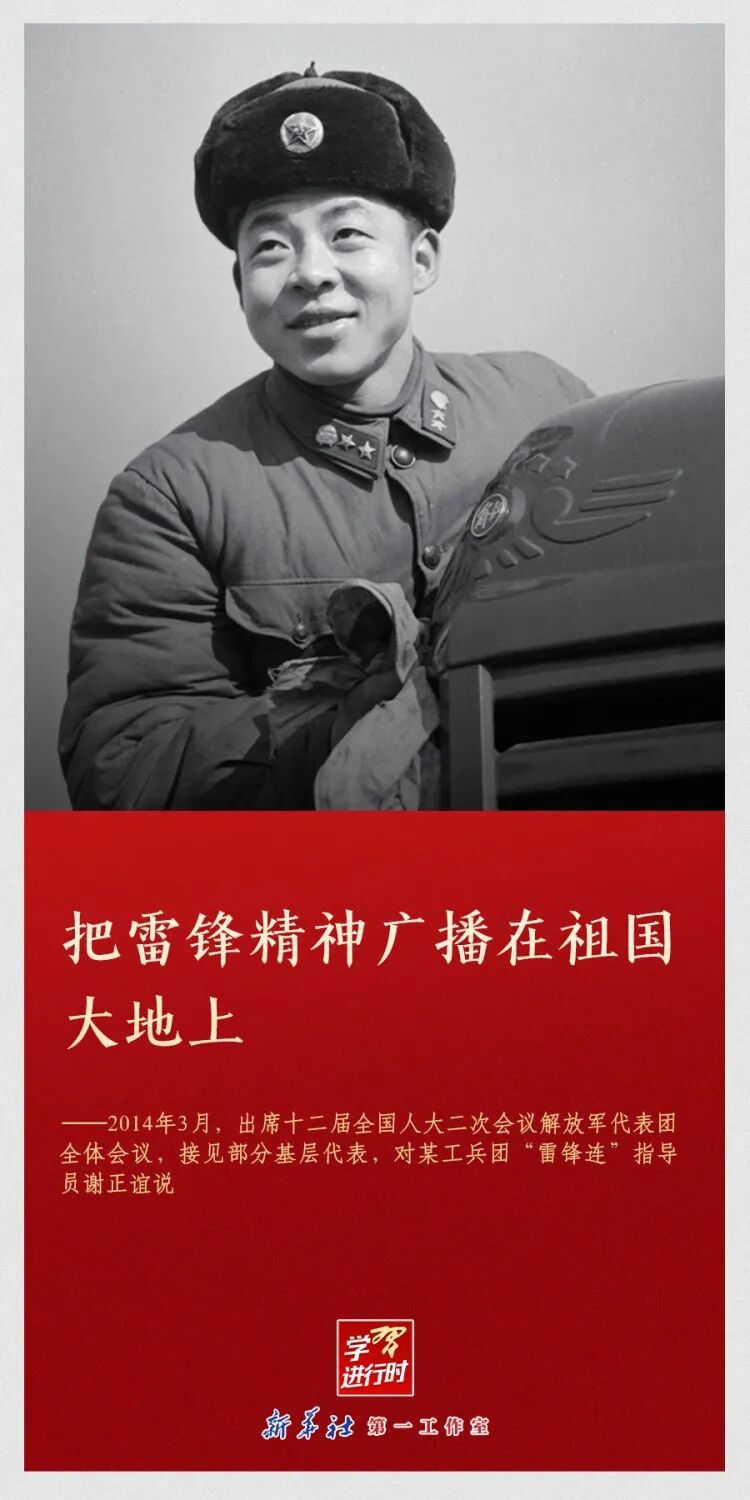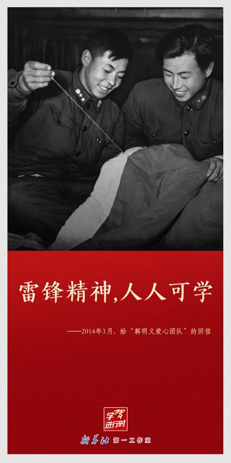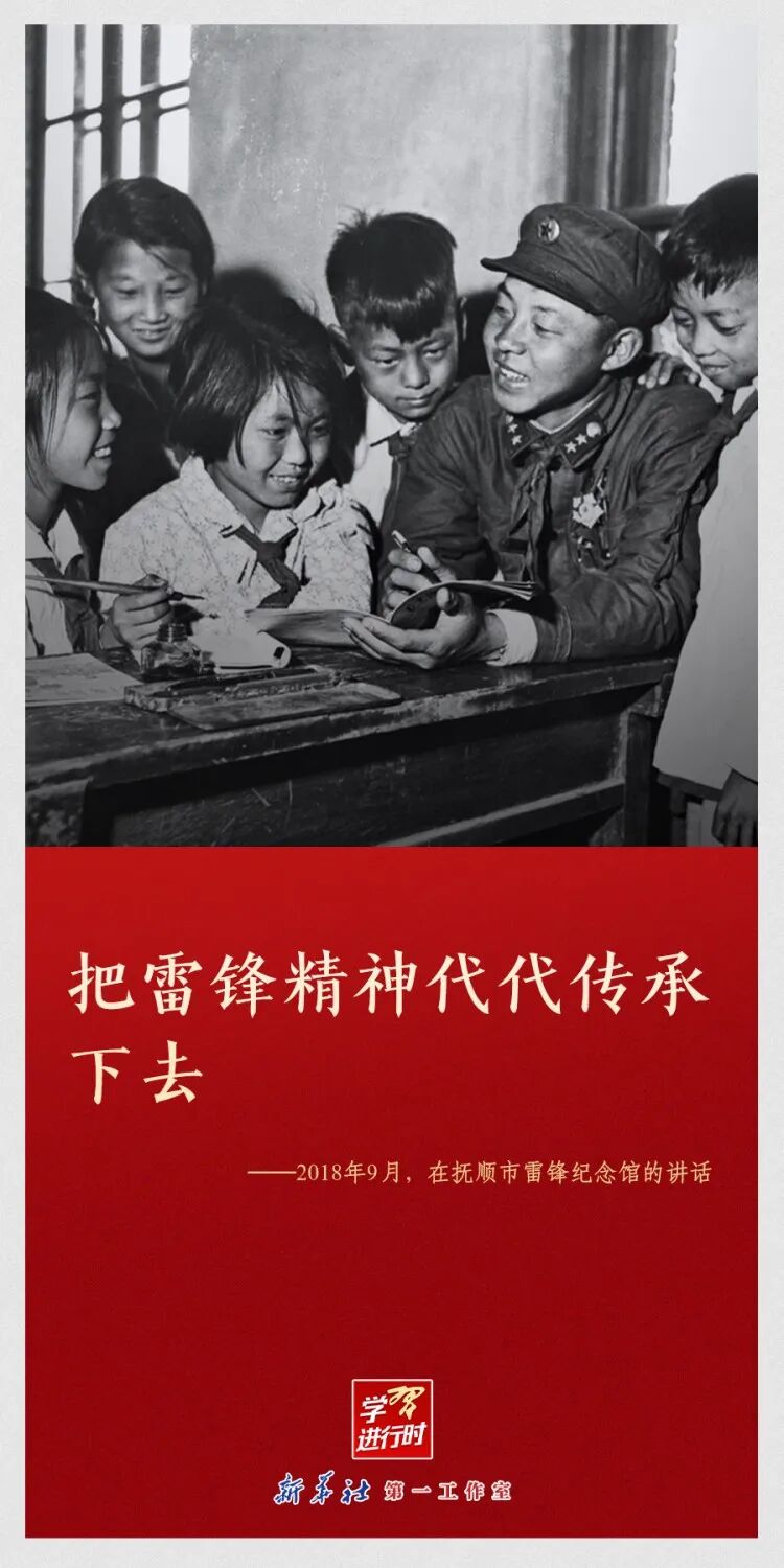 “雷锋精神永不过时”“让学雷锋活动融入日常、化作经常”“雷锋精神,人人可学”……党的十八大以来,习近平总书记多次动情地谈到雷锋精神。在学雷锋纪念日到来之际,让我们一起重温习近平总书记关于雷锋精神的重要论述。