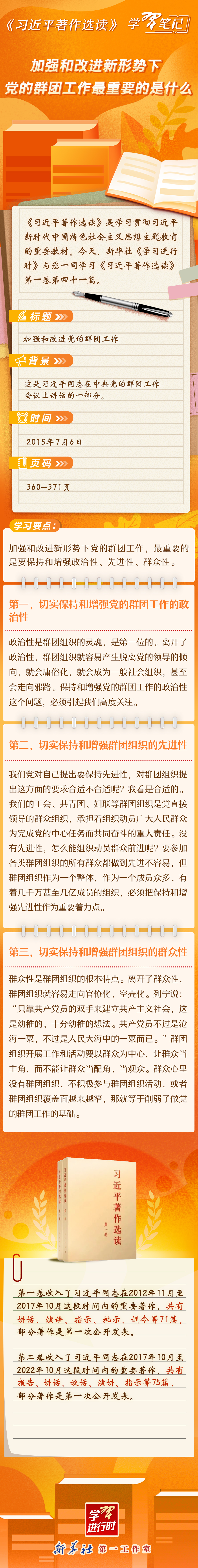 《习近平著作选读》学习笔记:加强和改进新形势下党的群团工作最重要的是什么