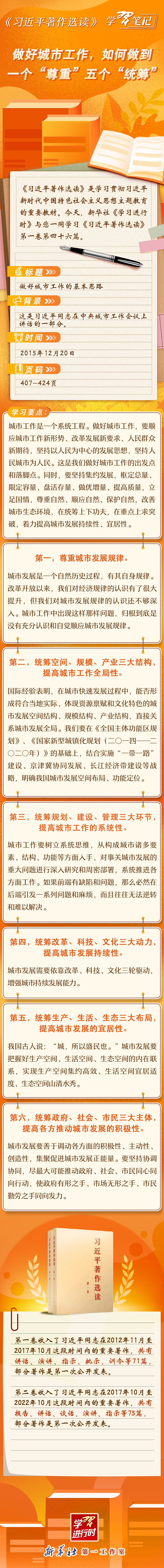 《习近平著作选读》学习笔记:做好城市工作,如何做到一个“尊重”五个“统筹”