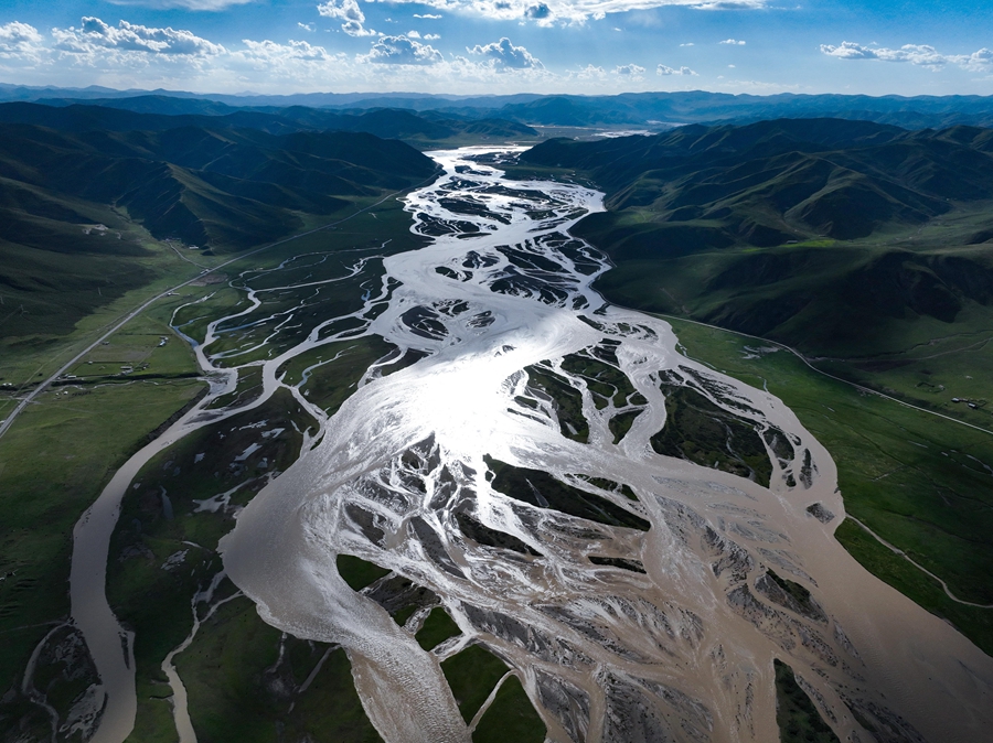 在青海省果洛藏族自治州达日县境内拍摄的黄河(2024年7月31日摄,无人机照片)。