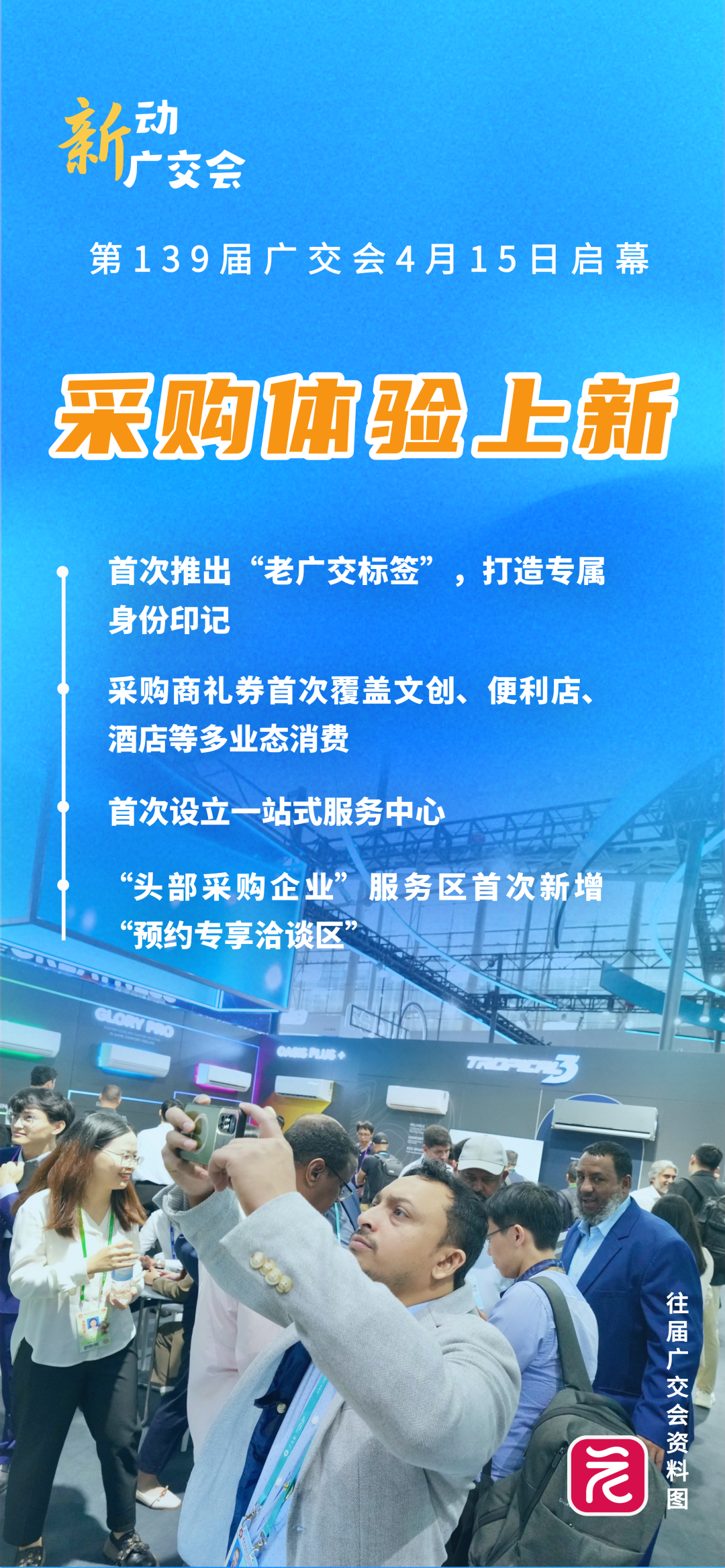 本届广交会含“新”量更高,不仅有八大专区全新出炉,还将首次推出“老广交标签”等一系列采购新体验。