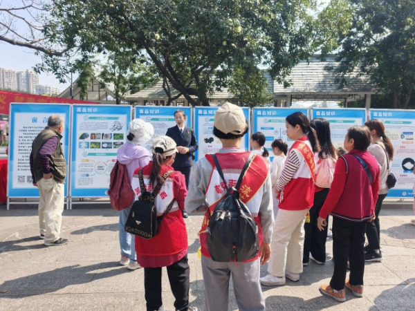 活动现场热闹非凡,禁毒讲师与志愿者们穿梭在往来街坊之间,通过悬挂主题横幅、摆放禁毒宣传展板、发放粤语版宣传手册等形式,把禁毒知识与消费维权常识送到市民手中。大家在欣赏流花湖春色的同时,轻松学习识毒、防毒、拒毒技巧,了解消费陷阱防范方法,让安全理念融入日常烟火气。