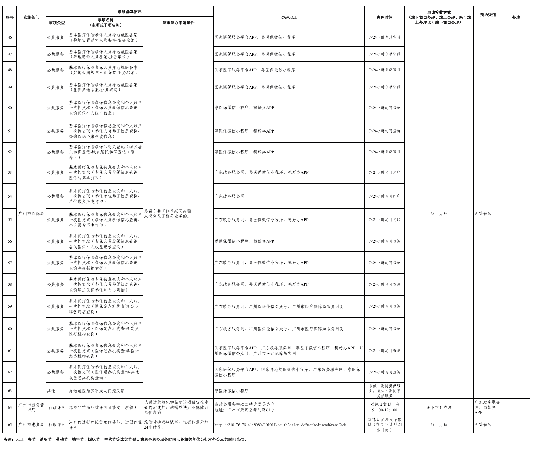 为贯彻落实《广州市政务服务条例》精神,满足企业群众在非工作日期间办理政务服务事项的需求,现集中公布广州市2026年度“急事急办”服务清单,具体情况详见附件。