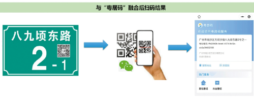 广州市将“广州门牌”二维码与“粤居码|粤治安”小程序的楼栋码进行了融合: