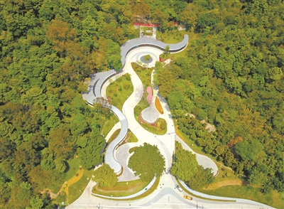 更让人惊艳的是,原本狭长的游客通行通道,如今却成为一处别致的社区公园。陈雄介绍,本次改造后移门岗,扩大前广场,拓宽入口敞开面至110米,重塑柯子岭山路前导空间,设置多层次立体活动平台,提供集娱乐、运动、交流于一体的场所,增强市民参与感和获得感,真正实现“还绿于民、还景于民”的愿景。“门岗的面积增加了一倍多。”