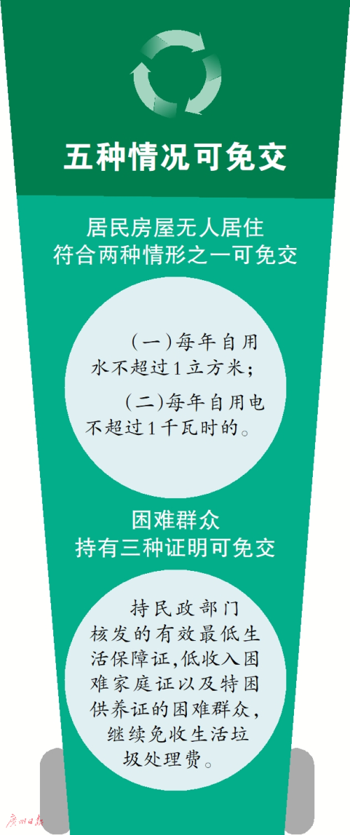 值得注意的是,2020年新版实施细则进一步明确了免收对象。即“居民房屋无人居住,存在以下情形之一的,可免予缴交生活垃圾处理费:(一)每年自用水不超过1立方米;(二)每年自用电不超过1千瓦时的。”此外,持民政部门核发的有效最低生活保障证,低收入困难家庭证以及特困供养证的困难群众,继续免收生活垃圾处理费。收费人员对免收的居民户,要查验其证件并登记证件编号。