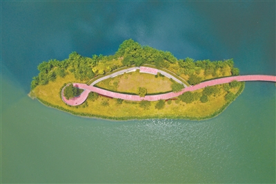 俯瞰南沙凤凰湖,碧道连着湖心。