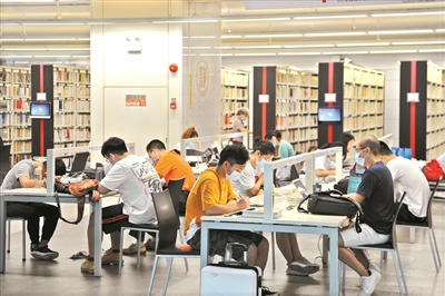 “周末能约到号不容易,座位也紧张。进了门后还得比谁上楼更快。”读者何健对记者说,广州图书馆的座位实行“先到先得”的原则。作为一名选择考研的大学生,他在9月6日8时30分就来到图书馆7楼拿到了座位,并准备待到下午。