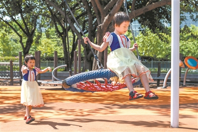 带孩子在碧道上玩耍的刘女士告诉记者:“这里的环境好,空气好,交通又方便。有轨电车就在旁边,还能晒到太阳,比室内的游乐园更适合孩子。”注重品质与细节是广州碧道建设的特色,记者看到,游乐园里的“沙池”铺的不是沙子而是小块的树皮。负责阅江路碧道设计的广州市城市规划勘测设计研究院有关负责人告诉记者:“使用小块树皮避免了孩子玩耍时,鞋子总会进沙的情况,而且树皮也更柔软,对孩子更安全。”此外,阅江路碧道上的草地并没有设置任何禁止人进入的设施,相反,设计者希望市民与草地亲近。广州市城市规划勘测设计研究院有关负责人说:“碧道上种植的是兰引三号草,就是足球场用草,适应力强、耐踩踏。我们希望看到人们在草地上搭帐篷、野餐,嬉戏、玩耍,好好享受这美好的滨水空间。”