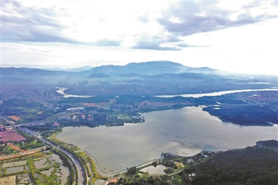 晨光中的增城挂绿湖。
