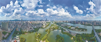 6月下旬,龙舟水结束,蓝天白云下珠江沿岸风景优美