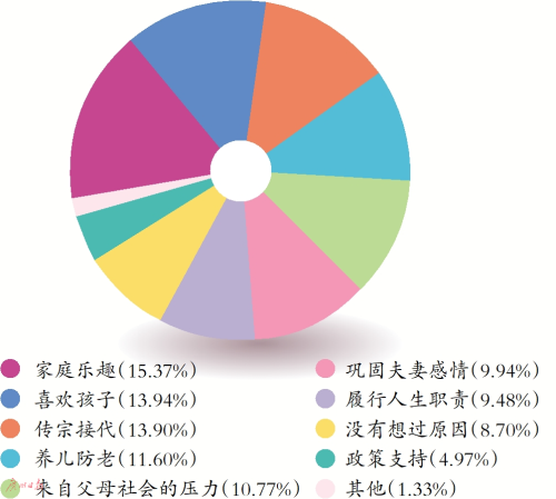 华南农业大学经济管理学院教授罗明忠介绍,课题组对广州市18—50岁常住居民673份有效调查问卷结果显示,人们之所以生育,其原因从高到低依次为:增加家庭乐趣、喜欢孩子、传宗接代、养儿防老、来自父母社会的压力、巩固夫妻感情、履行人生职责、没有想过原因、政策支持和其他等方面。
