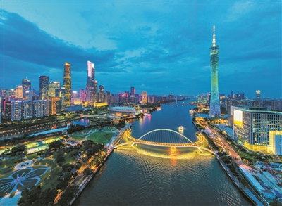 广州海心桥去年建成,是首座飞架珠江两岸的斜拱曲梁人行桥