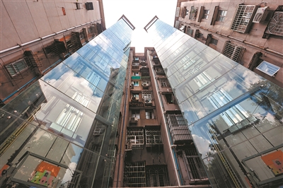 图为黄花岗街道“连片托管”的楼宇,目前广州已有近5000台加装电梯纳入托管。