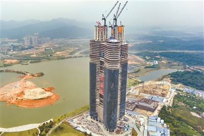 11月8日下午,中新广州知识城知识塔项目主体结构封顶仪式在知识塔东塔顶举行,标志着知识塔项目建设取得阶段性重大成果。这也是知识城中新国际科技创新合作示范区(中新二期合作)建设的一个重要里程碑,推动中新合作迈向“新高度”。