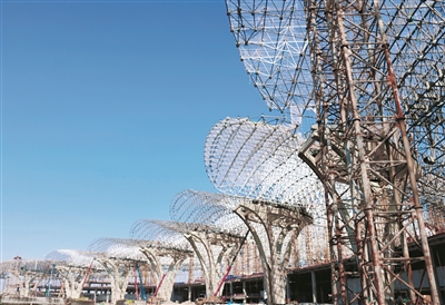 过年期间,在T3航站楼C区,春节留守的工人正忙着拼装、焊接钢网架。项目负责人介绍,T3航站楼采用集中式主楼+指廊式构型,总建筑面积超40万平方米。项目2023年3月开工,到2023年12月钢筋混凝土结构全面完成。到目前为止,项目钢网架工序已完成总量的65%,预计3月底,钢网架工序全部完工。另外,航站楼里面的二次结构已经全面铺开施工,预计今年5月份全面完成。