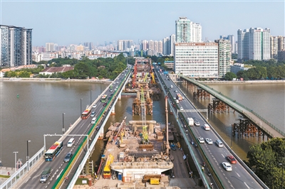另外,为满足珠江远期通航要求,东桥须拆除2处旧桥墩,原址保留4处旧桥墩,“对于原址保留的旧桥桥墩,我们将采用门式墩形式进行抬高保护,并进行修缮维护,新旧桥墩并存。”侯赛峰说。