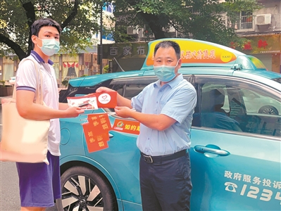 送考车辆司机给考生送上小礼物