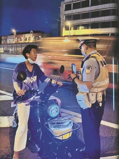 广州交警查处电动自行车交通违法行为。