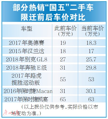 前两天,广州一名在金融公司工作的胡先生,顺利办完了一台“国五”二手机动车迁移注册手续。“我通过二手车交易平台搜到一台在杭州牌照的2010年‘国五车’,交易价是8.9万元,之前本地的可选车型很少。”胡先生表示,本月起,符合“国五”的外地二手机动车可以和“国六”一样迁户上广州粤A牌,像他这样想淘便宜代步车的消费者就“着数多多”,省了不少钱。