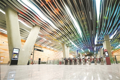彩虹桥站将为市民带来哪些视觉亮点?记者了解到,彩虹桥站车站装修充分挖掘所在区域驷马涌、荔枝湾、流花湖深厚文化底蕴,以“南越彩虹,不让姑苏”为设计主题,在满足于交通功能的基础上,与区域文化特征相呼应,提升乘客与环境的交互体验及人文感受的需求。
