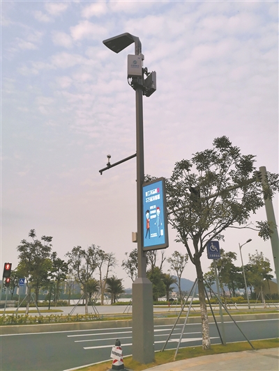 如果市民有开车去南沙明珠湾起步区,不妨留意下路边的“智慧路灯”。从2020年4月起,集成了监控摄像头、户外电子公告屏、应急对讲报警设备、微型气象站、新能源车充电桩等多种功能的智慧灯杆在广州市南沙区、白云区纷纷落地。工作人员告诉记者,智慧灯杆能够根据环境亮度自动调节照明,当遭遇不佳的天气时,后台可以通过地理坐标定向发送给对应路段的智慧灯杆,灯杆的大喇叭就能“张嘴说话”,提醒司机“某段路有积水,请绕行”;而如果行人闯红灯或车辆发生了违章违停的行为,智慧灯杆的大喇叭也会及时通过语音广播予以指出,提醒行人或车主及时纠正行为。