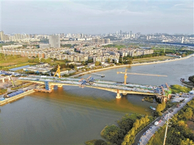记者11月23日在施工现场看到,项目控制性节点工程大石水道桥顺利合龙,桥梁主体已基本完工。大石水道桥采用主跨125米连续刚构桥跨越Ⅳ级航道,既满足通航要求,又线形优美,与周边环境相得益彰。