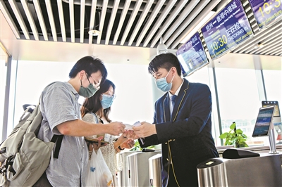 市民刘小姐准备前往韩国首尔出差兼观光,她提前几天在微信小程序购买船票,感觉很方便。她说:“上午坐船从广州出发,中午12点多就可以到香港国际机场,下午4点多飞往韩国首尔,中间还有时间可以逛逛。在码头就可以办理值机,大件行李在码头还能直接托运,很省心。”