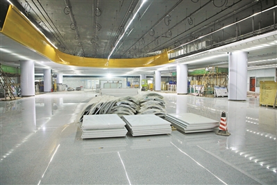 长轨贯通仪式在十一号线赤沙站举行,这是列车从车辆段始发后进入的第一座车站,也是全线首座露出真容的在建车站。在站厅层,车站装修和机电施工正在进行,地砖大面积成型,白色天花也已现雏形。