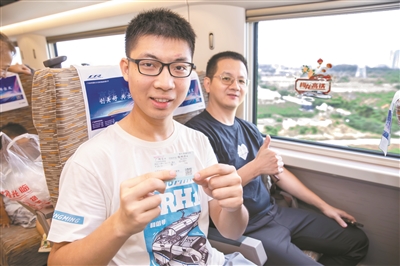 梅州是著名的“足球之乡”“金柚之乡”“花灯之乡”,现在从广州乘高铁,一个半小时就能到五华看中超、到兴宁赏花灯,2小时左右就能到梅州市区吃腌面、叹蜜柚、享客家美食。广铁餐车乘务长韩笑介绍,梅龙高铁列车上的餐饮特意准备了客家梅菜扣肉、荔枝肉、三鲜鱼丸等客家风味套餐,高铁奶茶品牌“那个女孩”研发了蜂蜜柚子茶,用清爽美味伴旅客度过“梅”好“食”光。