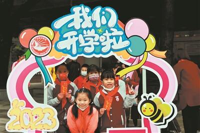 “老师同学早上好!”熟悉的问候声回来了。2月6日,广州市中小学幼儿园正式开学。为迎接学生重返阔别已久的校园,各校开学礼花样百出——“健康礼”“红包礼”、醒狮表演、非遗体验,仪式感“拉满”。谈及新学期目标,有同学希望“跑步越来越快”“磨砺画画本领”,还有学生喊出“以分数‘称霸’学校”。本报记者直击开学首日的校园,锣鼓喧天,满是欢声笑语。