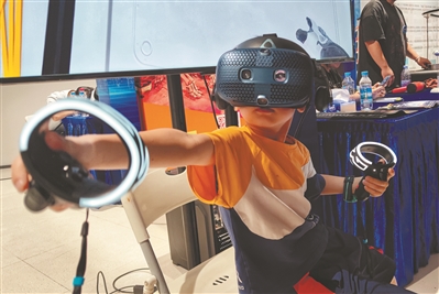 “在这里,孩子可以通过VR搭乘飞船、进入空间站,学到课堂之外的知识,打开眼界,充实体验。”黄女士告诉记者,儿子龙仔和很多同学都来到现场。10岁的周子正兴奋地说:“VR太好玩了,能看到空间站里的东西都飘起来,知道什么是失重。”这是由正佳科学馆带来的“拜访空间站”VR展项。