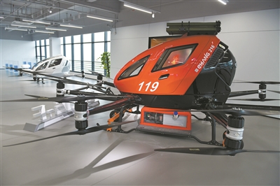 亿航智能展厅里展示的无人机产品