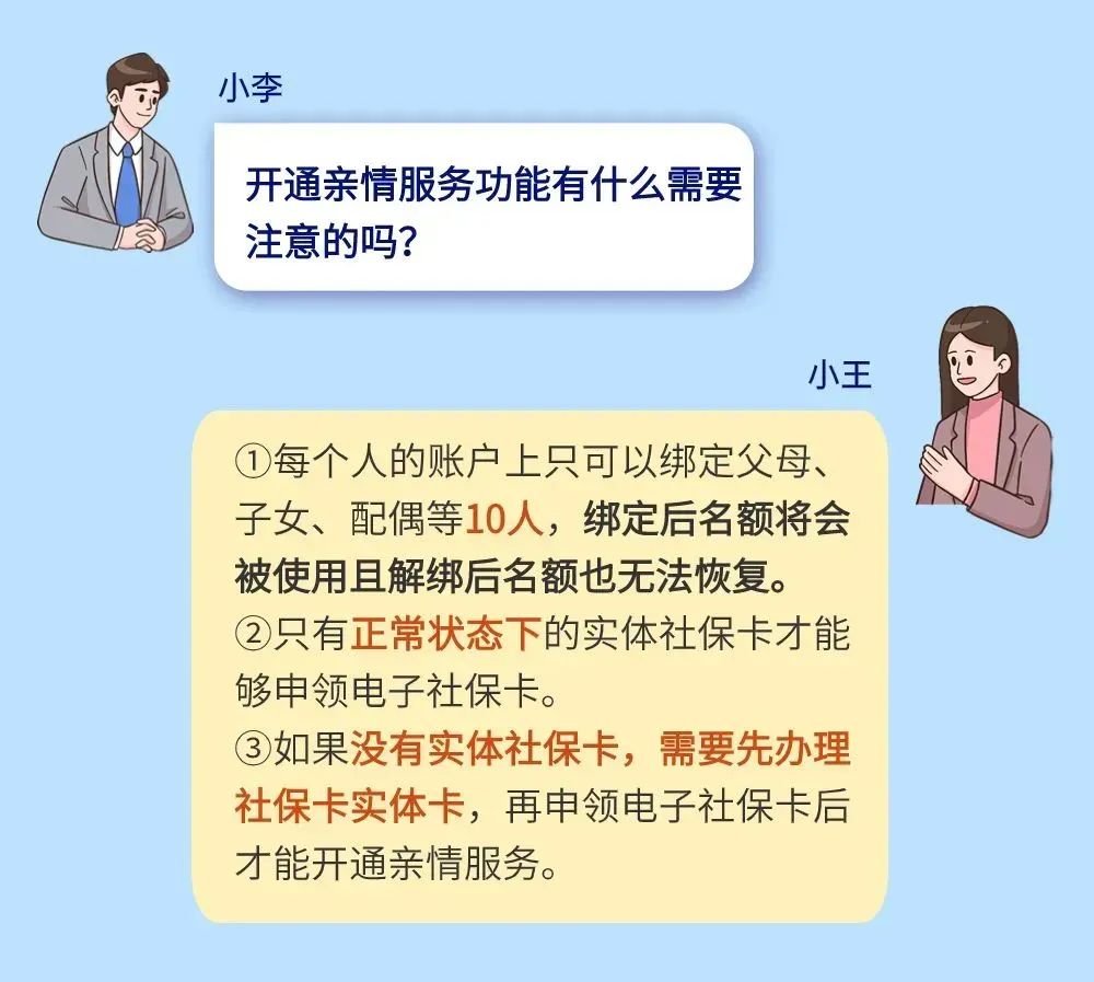 别着急,你可以通过电子社保卡“亲情服务”,添加亲情账户,帮爸妈办理相关的社保业务!